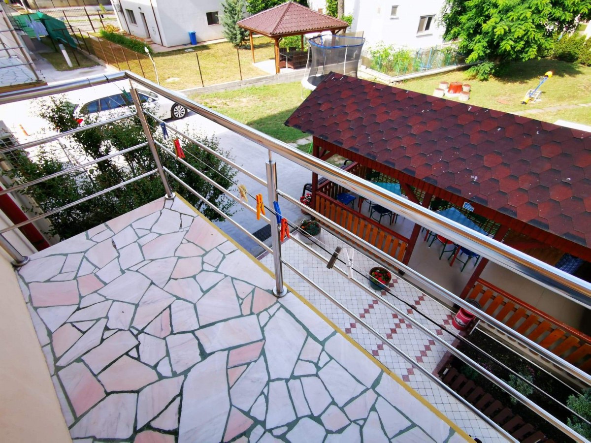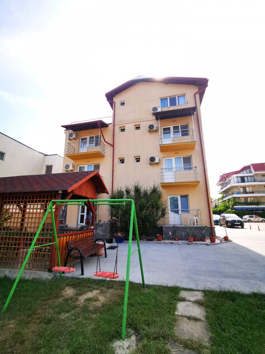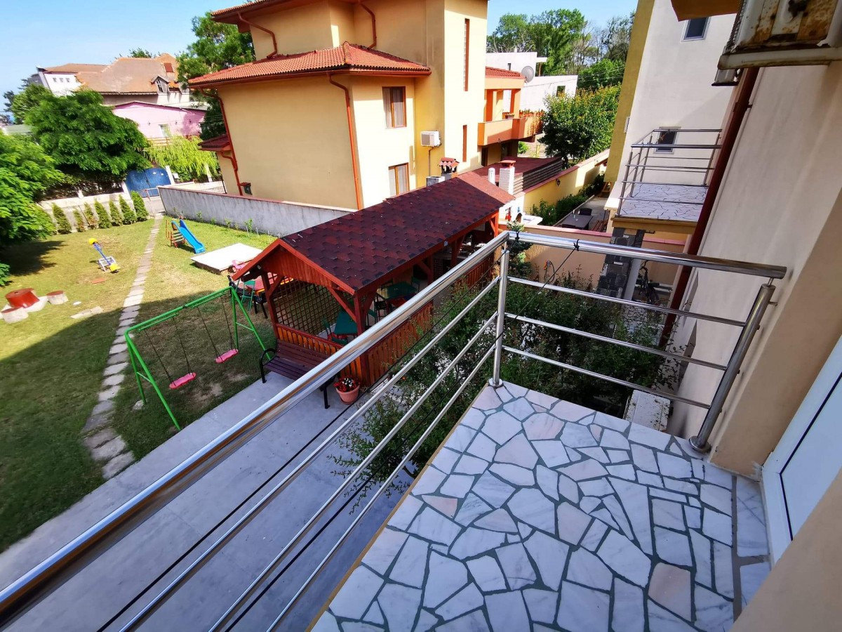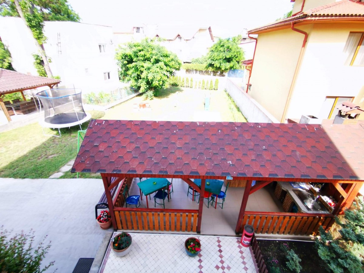 In curte este amenajat special pentru copii un loc de joaca cu topogan, balansoar, trambulina si leagan, iar pentru cei mari, foisor cu gratar-barbegue si acces la bucatarie pentru minuturi. Vila dispune de parcare auto.