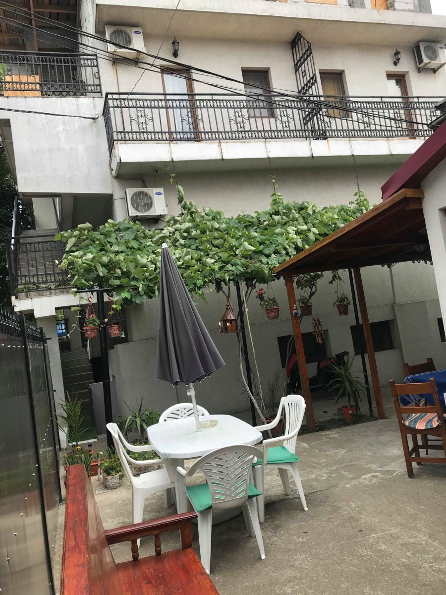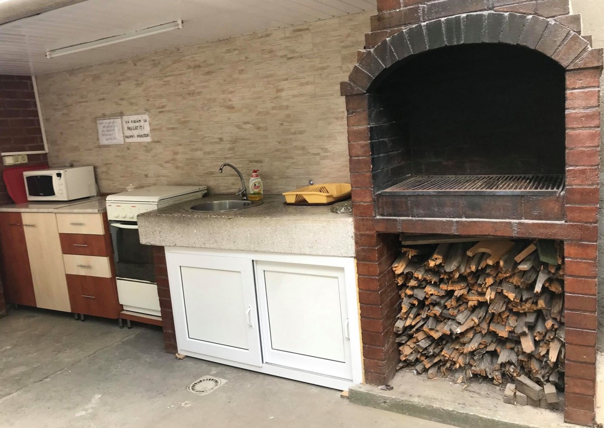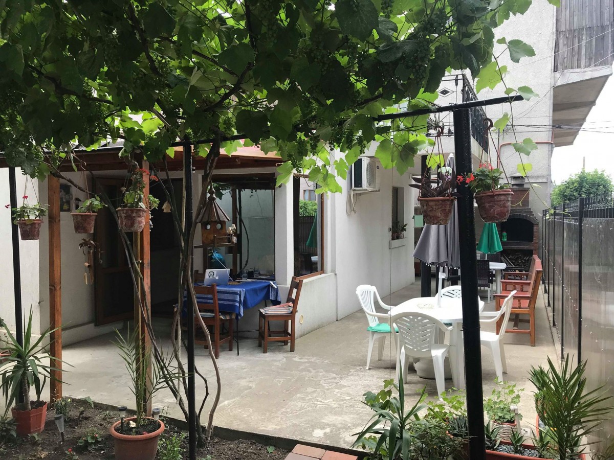 Curte interioara cu terasa, gratar si inclusiv bucatarie pentru pregatit minuturi.