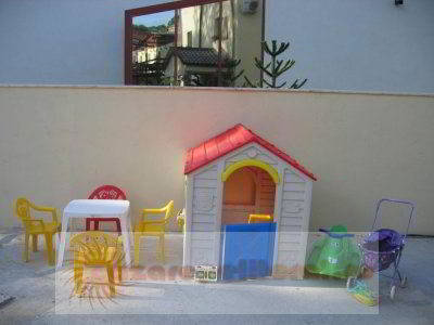 - loc de joaca pentru copii cu o trambulina si multe jucarii