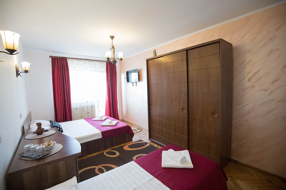 Vila se afla la o distanta de 15-20 min de mers pe jos si 5 min cu masina pana la plaja. Se poate lua si tractorasul care face plimbari prin statiune(centru,plaja).Va punem la dispozitie 5 camere cu grup sanitar propriu si terasa (2 cam duble, 2 cam triple si 1 apartament), bucatarie pt minuturi utilata cu frigider,aragaz,cuptor cu microunde,filtru de cafea, iar in curte terasa cu mese,scaune si gratar. Tarifele se negociaza in functie de durata sejurului si nr de persoane cazate.